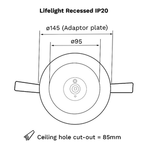 The ELIFE-X-LI is a recessed circular non-maintained emergency light for plaster or T-BAR suspended ceilings. The Lifelight provides a D40 emergency classification in a sleek architectural design.