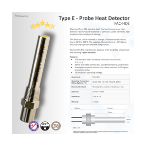The Model 1000 Type E fixed temperature heat detector Model 1000 is a stainless steel thermal probe detector suited to severe environment conditions encountered in marine, chemical, mining and transport industries.